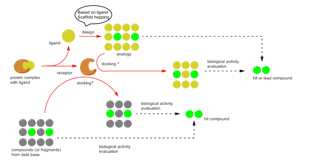 高通量篩選(HTS)在制藥和生物技術中的廣泛使用意味著現在可以常規地研究大量化合物的生物活性。用常規的生物技術篩選大型化合物庫仍然是一個昂貴且耗時的過程?,F在,高速計算機基于靶點蛋白的虛擬篩選從靶蛋白的三維結構出發,研究靶蛋白結合位點的特征以及與小分子化合物之間的相互作用模式并根據與結合能相關的打分函數對兩者的結合能力進行評價,最終從大量的化合物分子中挑選出結合模式比較合理的化合物用于后續的生物活性測試。這個過程可以大幅降低藥物初期開發的周期與成本。